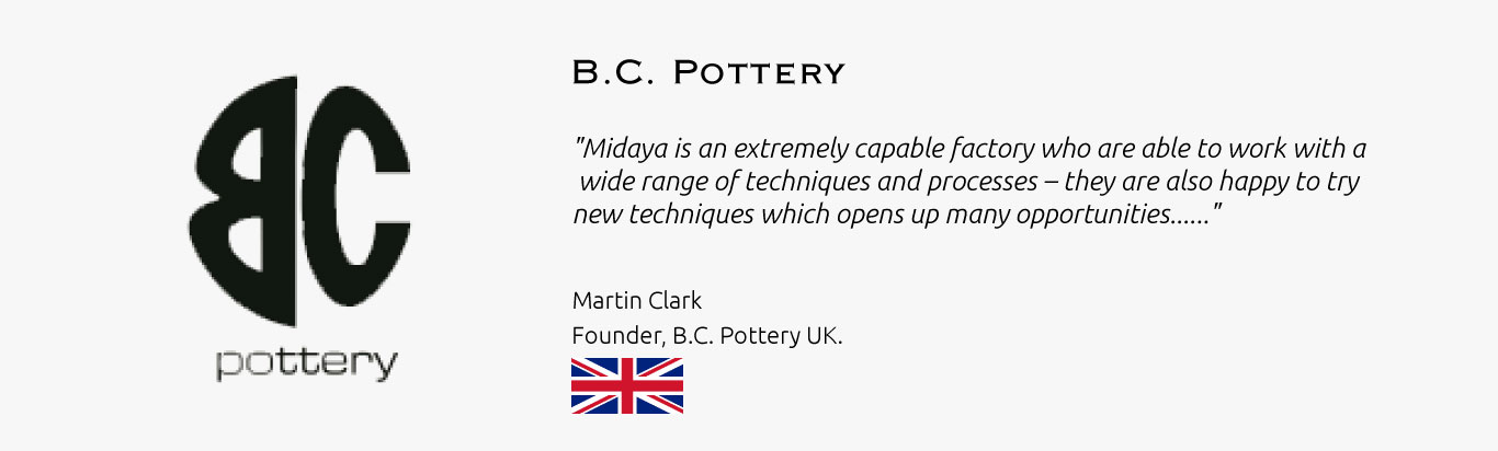 Midaya Ceramics is a gathering of multi skilled, efficient, craftspeople capable of working with various ceramic bodies and techniques to bring your ideas to life. We work with designers, manufacturers, innovators and artists from concept realization and all the way to retail shelf.