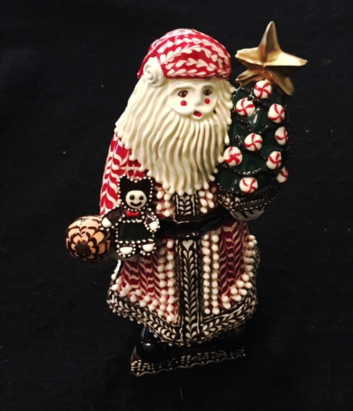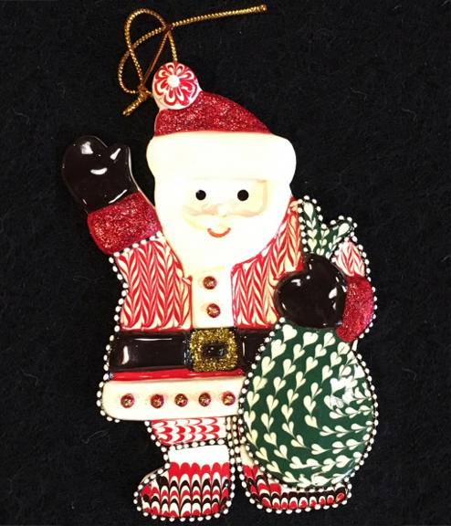 6TH CENTURY SLIP POTTERY STYLE SLIP TRAILED SANTA ORNAMENT