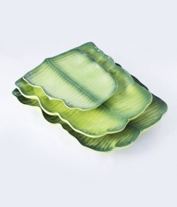 handpainted stoneware banana leaf set